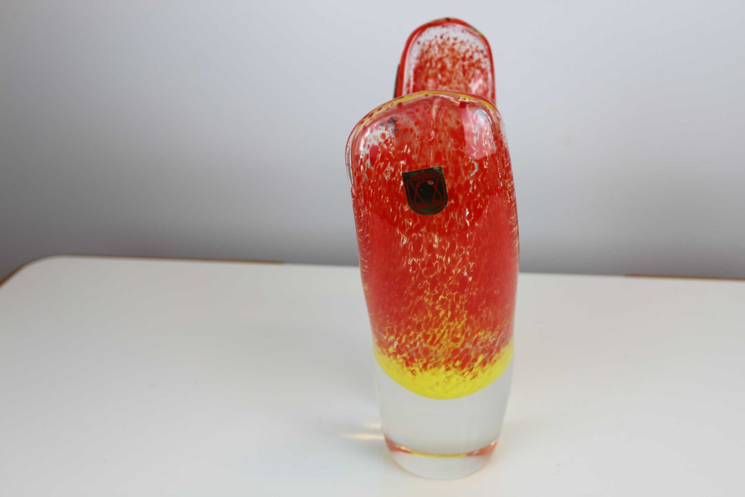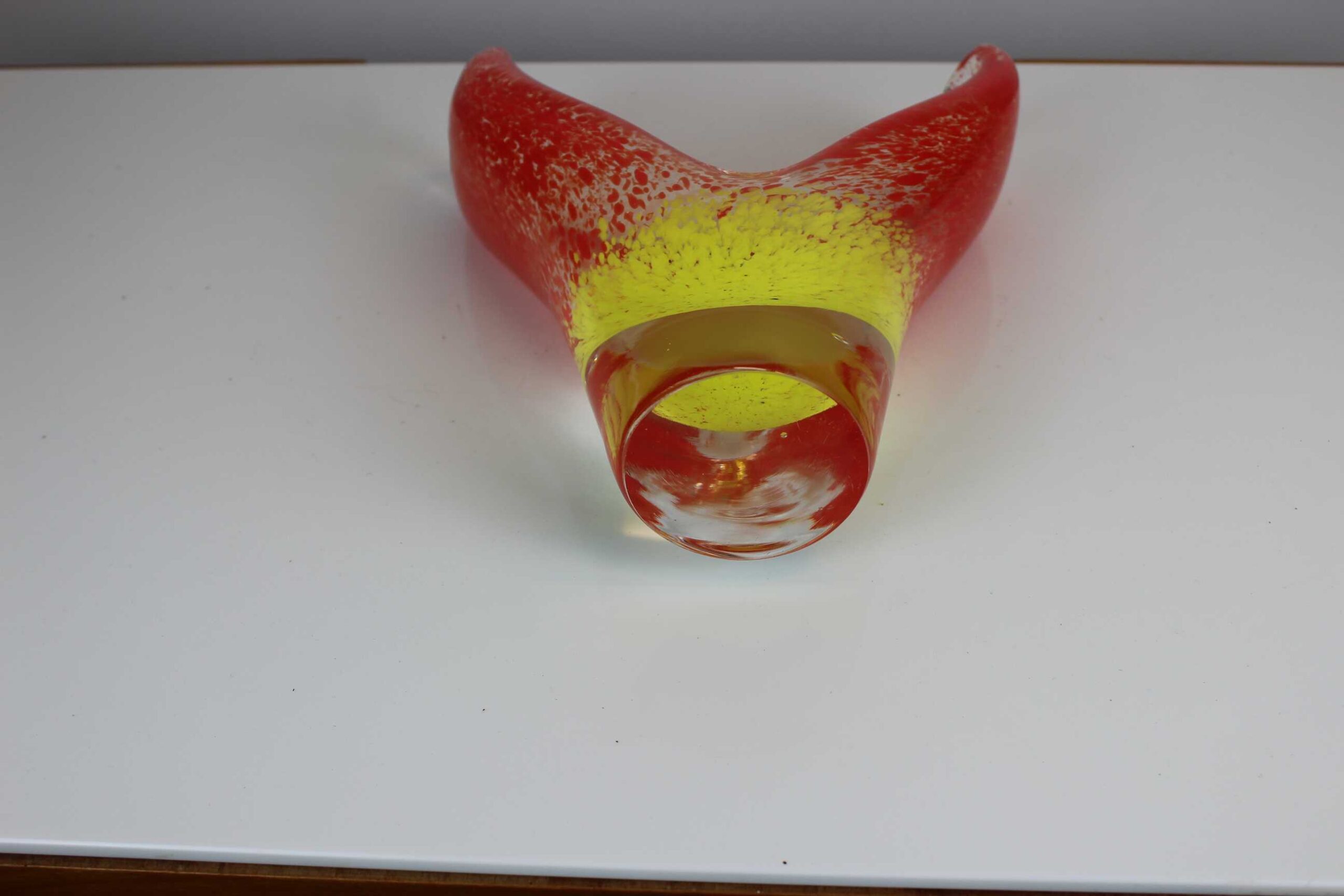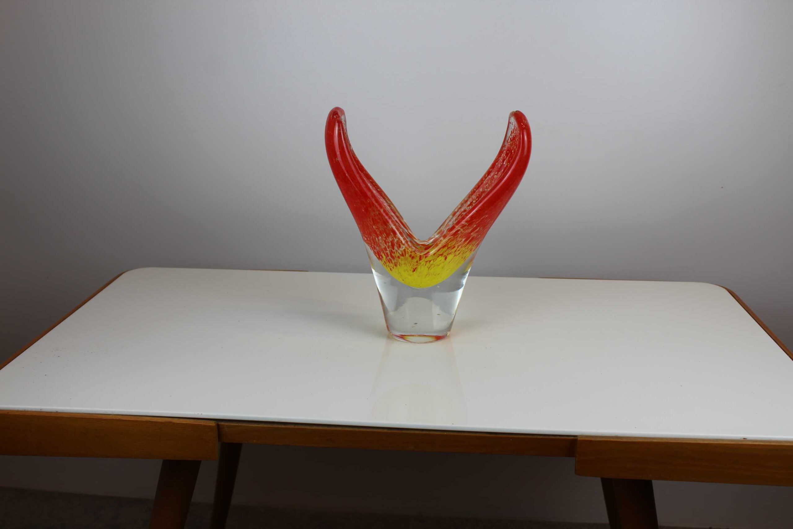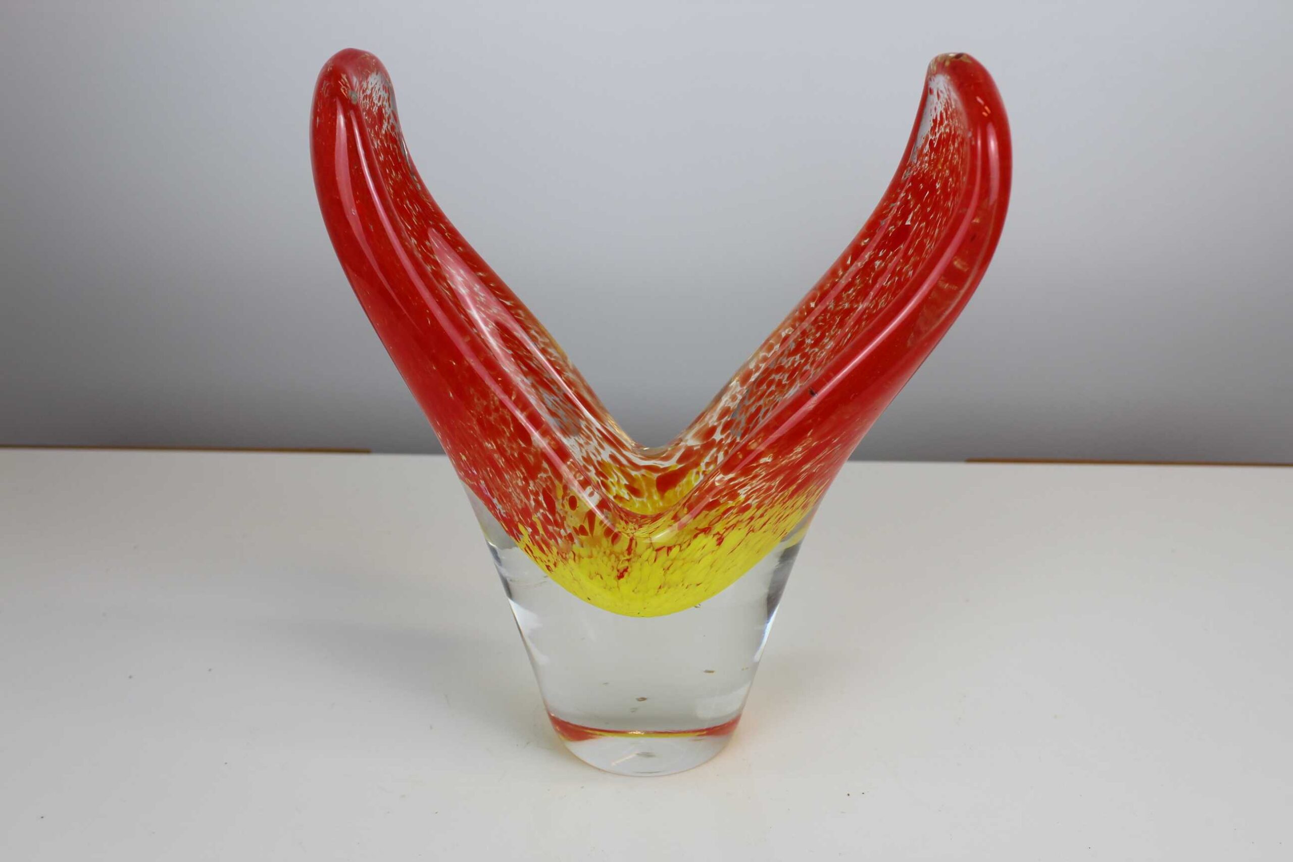 Rubinglas Red-Yellow V-Shaped Art Glass Vase