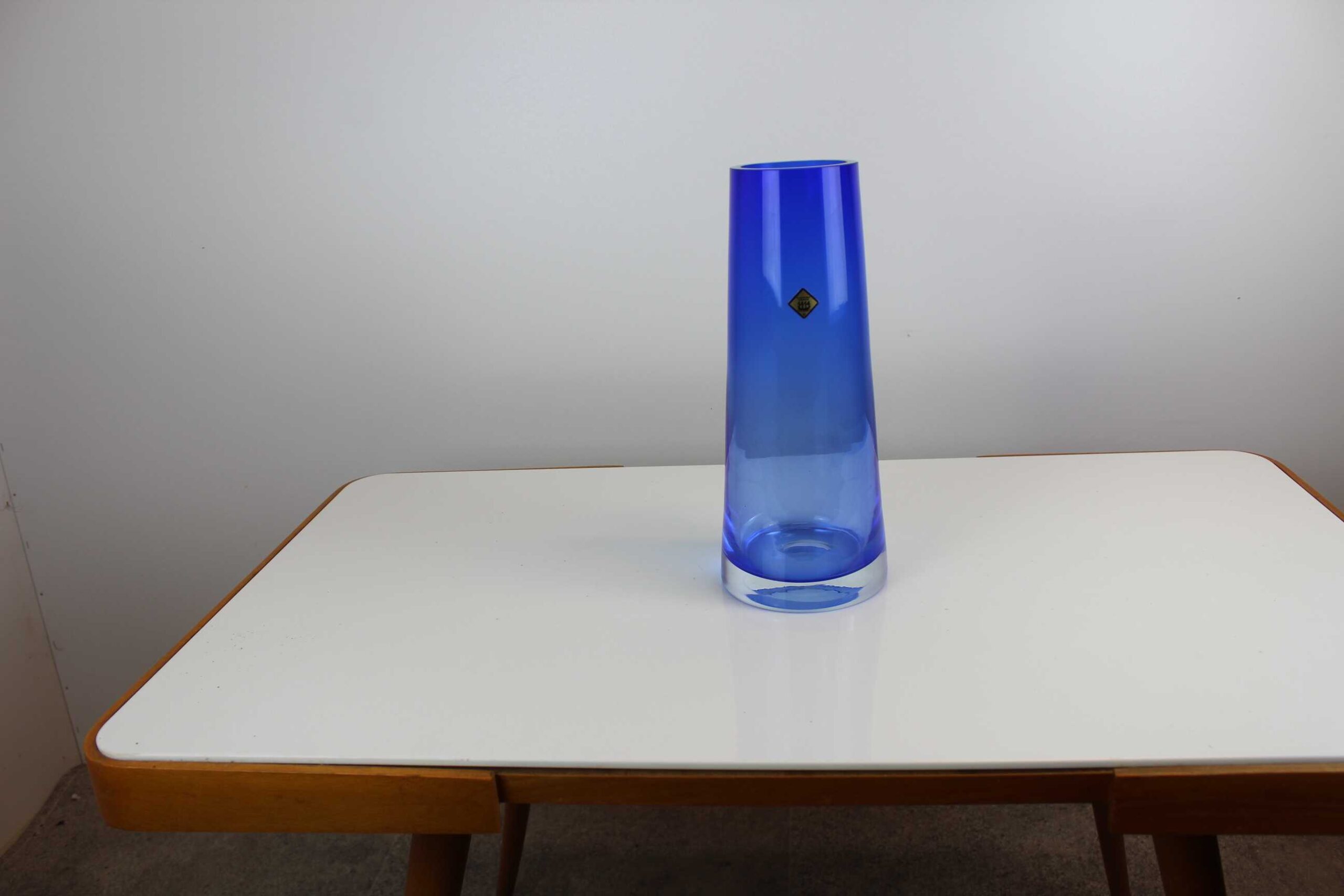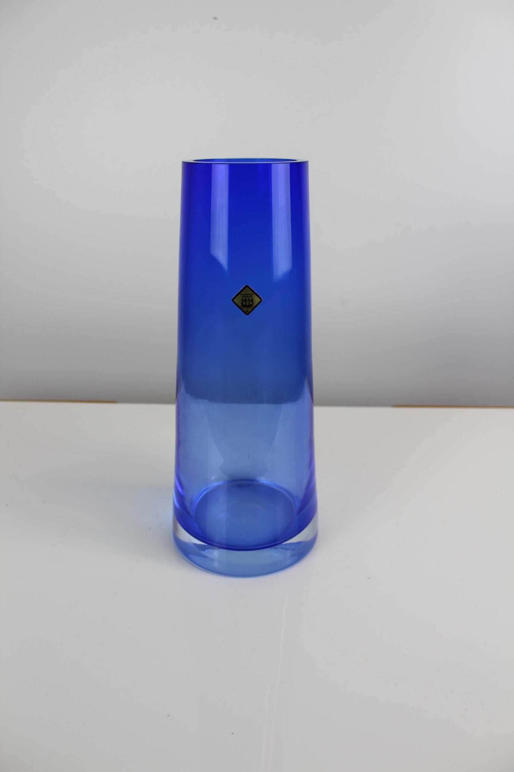 This 28 cm art glass vase features a strong, modern silhouette and a deep cobalt-blue tone that reflects light beautifully. Hand-blown from heavy Czech glass, it combines clarity, balance, and color depth. Its simplicity allows it to stand out as a timeless decorative element or serve as a refined flower vase. Each piece is a unique example of Czech glass craftsmanship.