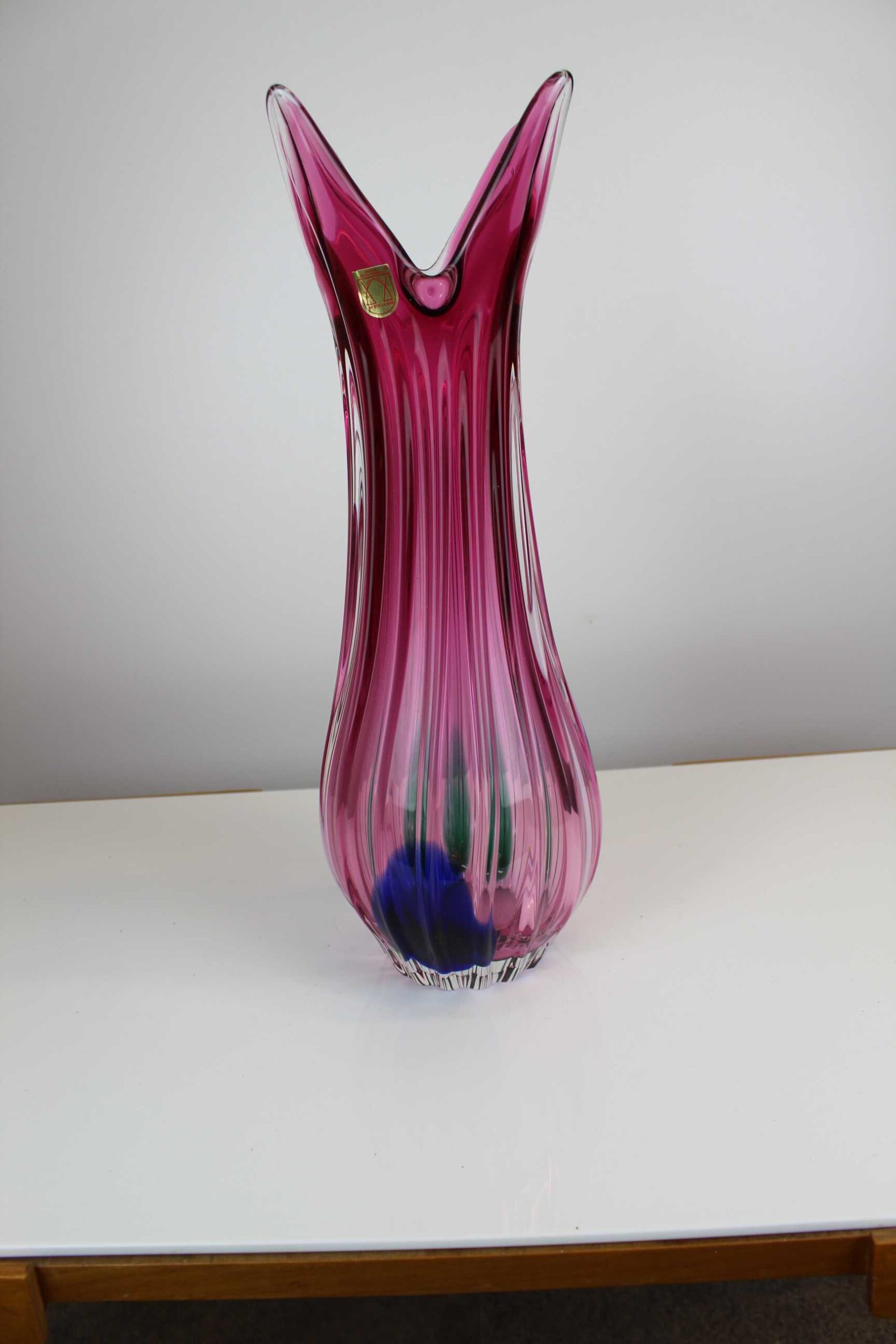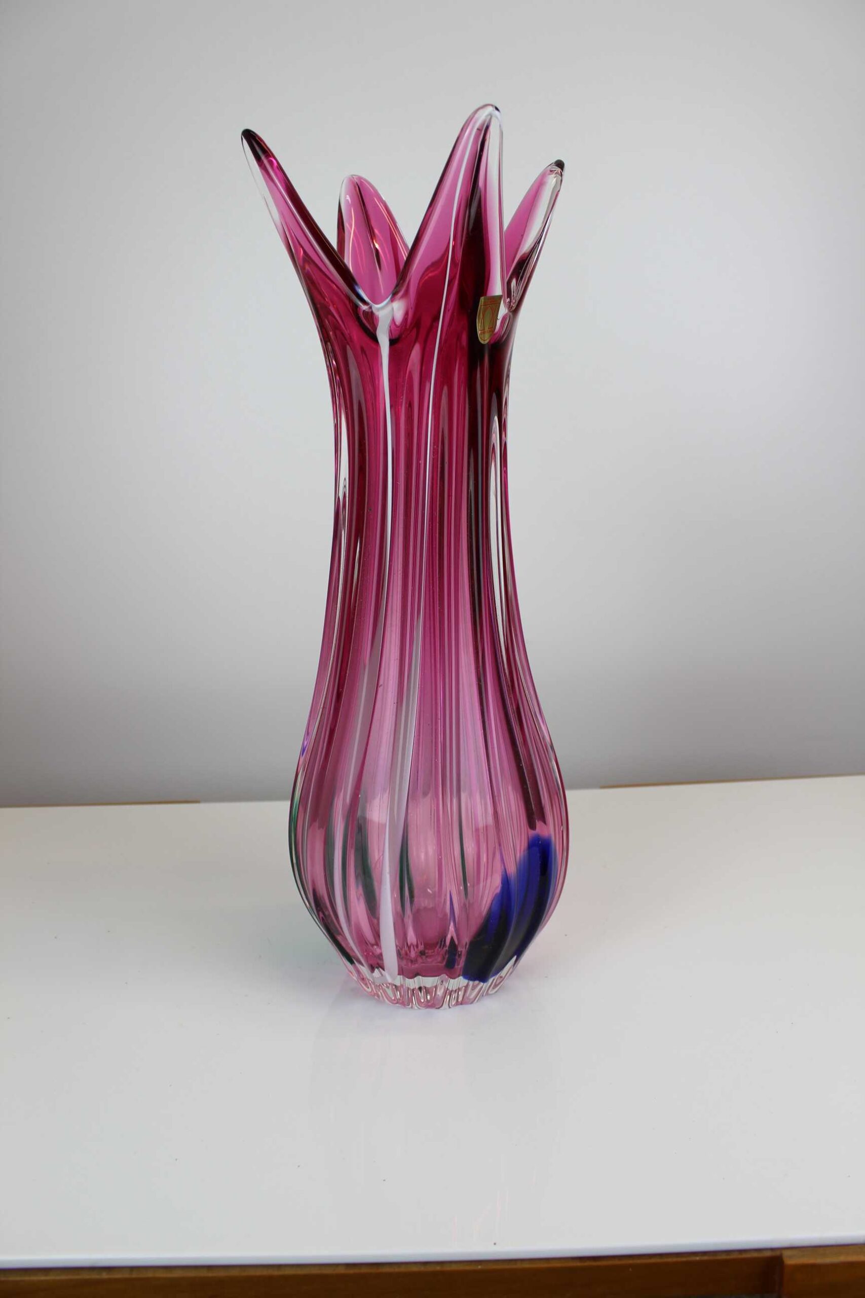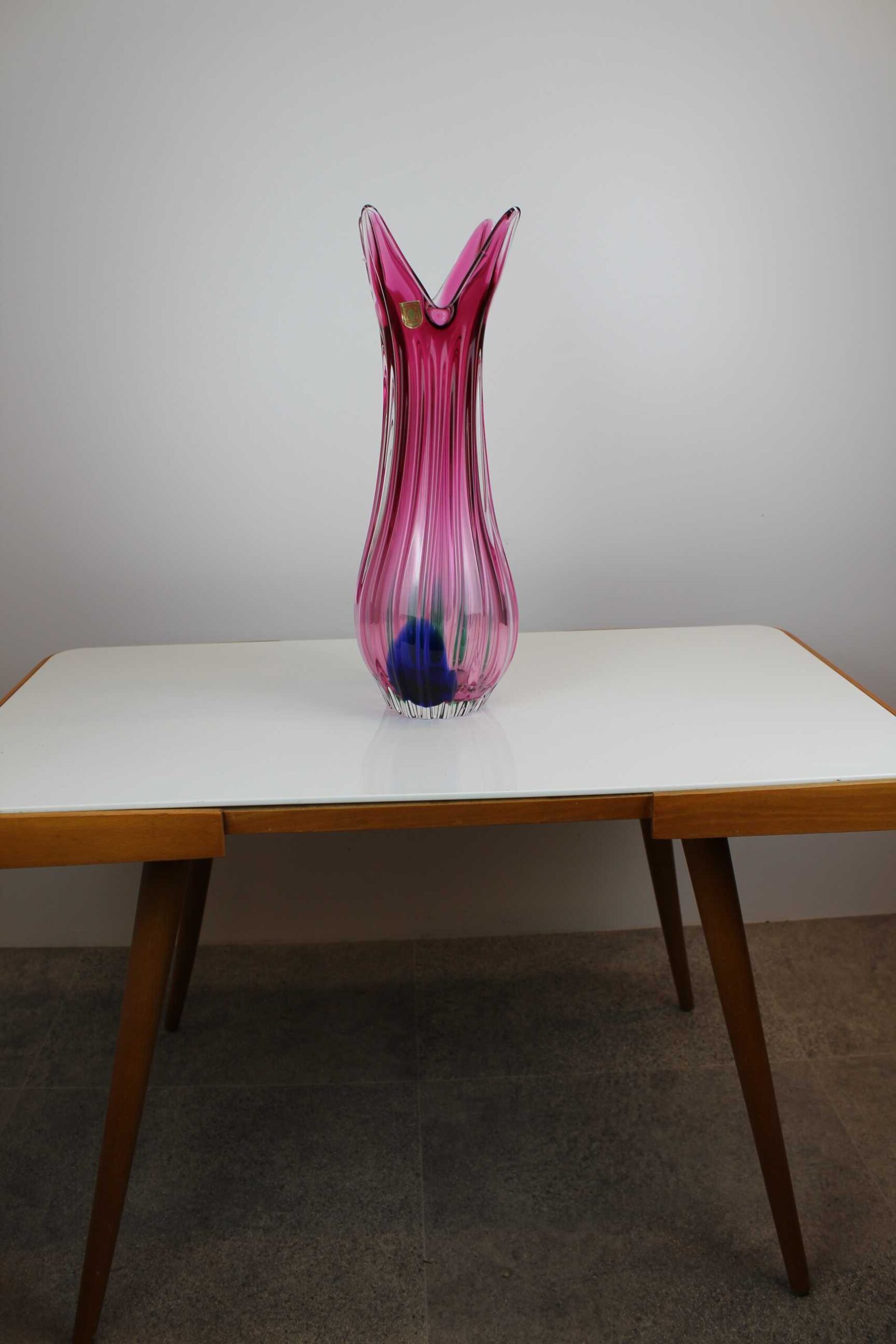 Standing 45 cm tall, this Rubinglas vase impresses with its organic, drawn shape and rich pink tones that fade seamlessly into clear glass. Perfect as a statement décor piece or for larger floral arrangements, it embodies the beauty of Czech glassmaking tradition. Each vase is individually hand-blown, making every piece truly one of a kind.