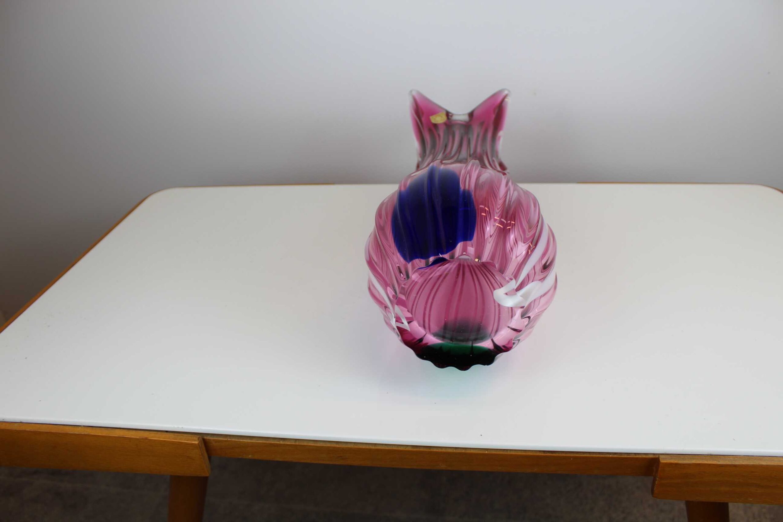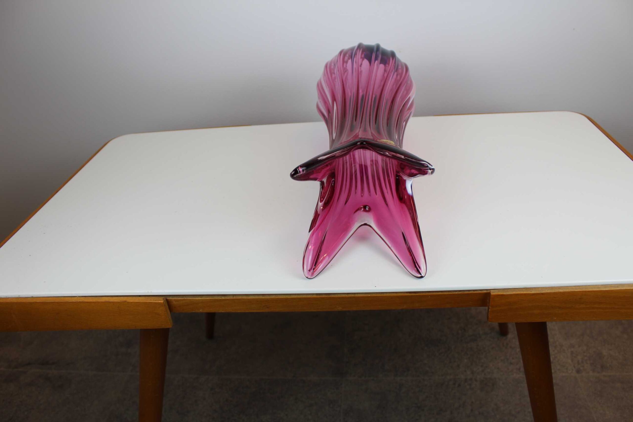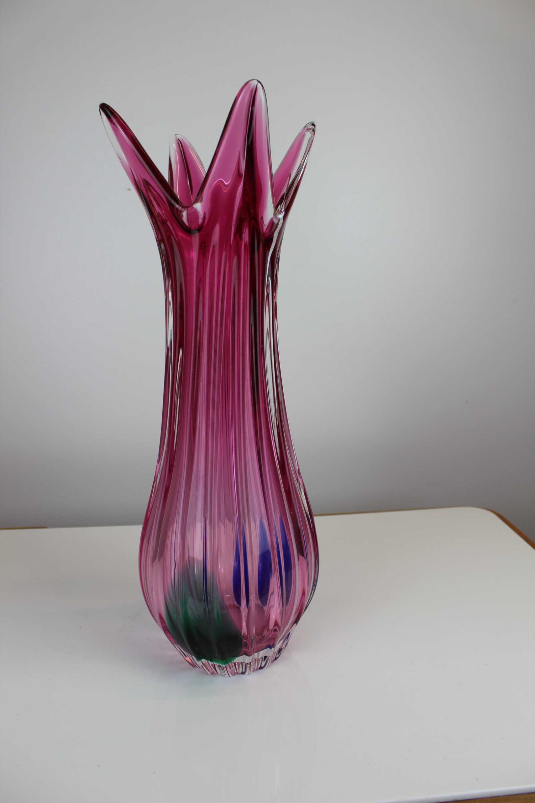 Standing 45 cm tall, this Rubinglas vase impresses with its organic, drawn shape and rich pink tones that fade seamlessly into clear glass. Perfect as a statement décor piece or for larger floral arrangements, it embodies the beauty of Czech glassmaking tradition. Each vase is individually hand-blown, making every piece truly one of a kind.