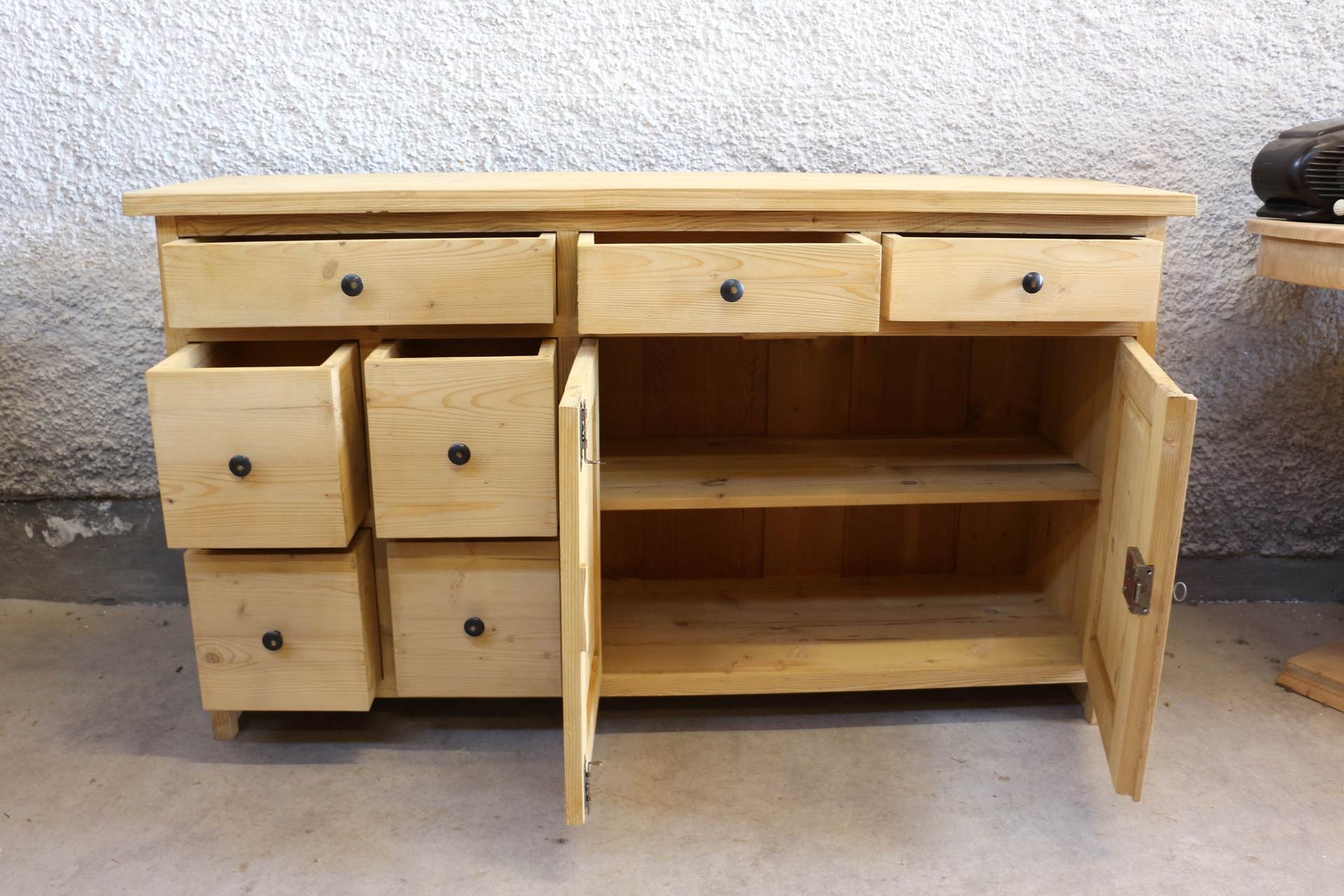 - Drawers: traditional dovetail joints